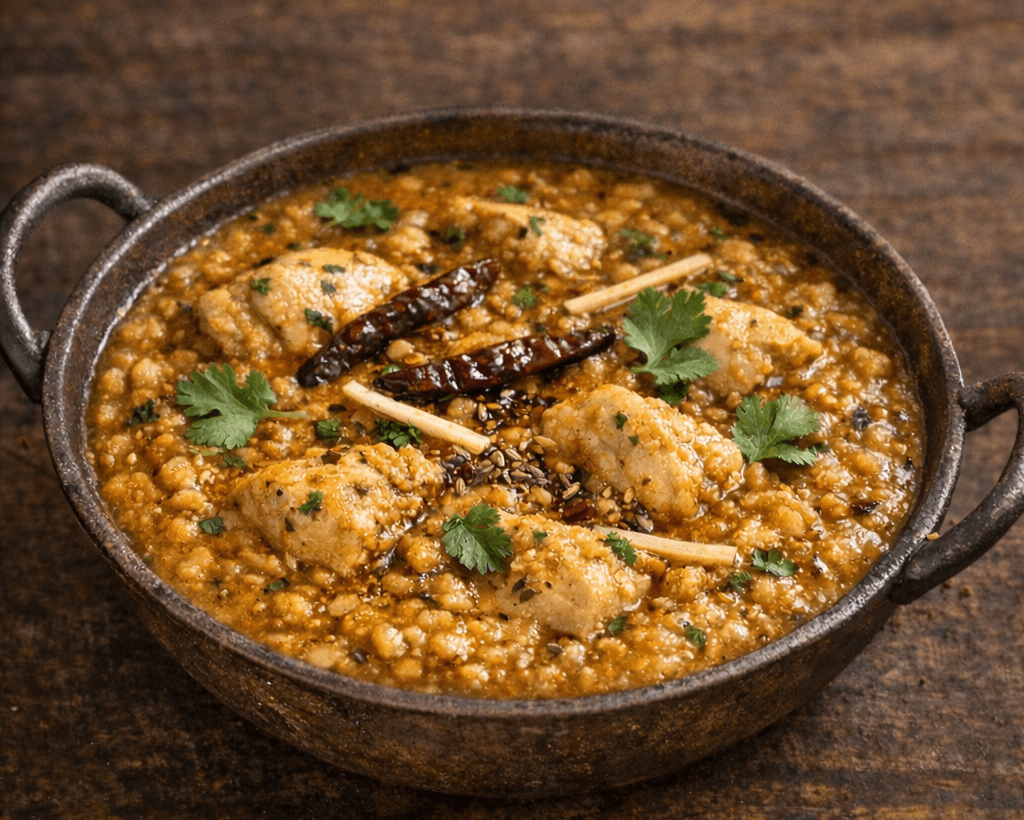 Dhaba Style Chicken Tarka Dal is a hearty, comforting dish made with tender chicken and slow-cooked lentils, tempered with aromatic Indian spices. Rich in flavor and protein-packed, it pairs perfectly with steamed rice or fresh naan for a satisfying meal. 🍗🥣